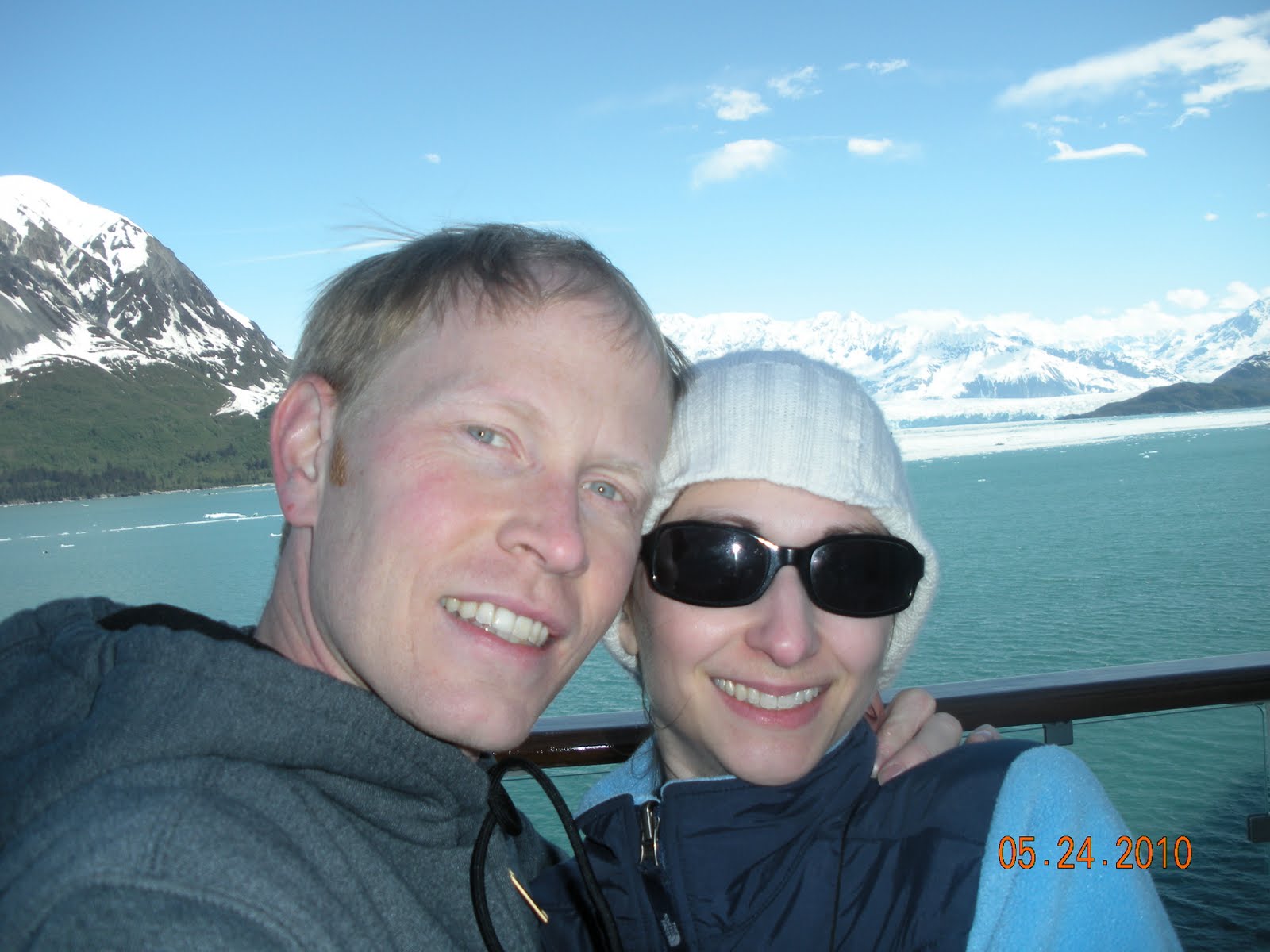 I'm finally getting back to finishing up my Alaska posts. One of the most beautiful parts of the cruise was the Hubbard Glacier and surrounding areas. We approached the glacier around 10am, which is John Harrison's naptime, so we all went out onto one of the main decks and then went back to our room, put John Harrison down for his nap, and then enjoyed the beautiful scenery from our balcony. Although we bundled up, the temperature wasn't nearly as cold as I would have expected; instead, the wind was blowing really hard making the air seem colder than it actually was. It was amazing to see huge chunks of ice, which had broken off from the glacier, floating around our ship.